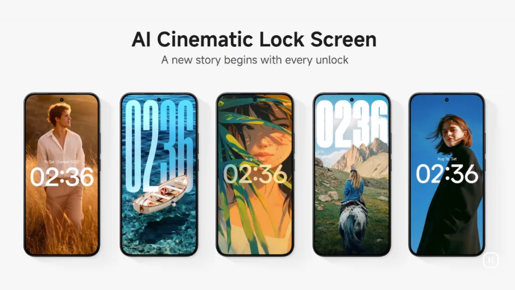 - شاشة قفل سينمائية: يقدم النظام شاشة قفل سينمائية بالذكاء الاصطناعي وخلفيات ديناميكية تحول تجربة شاشة القفل التقليدية إلى عرض مرئي سينمائي غامر.