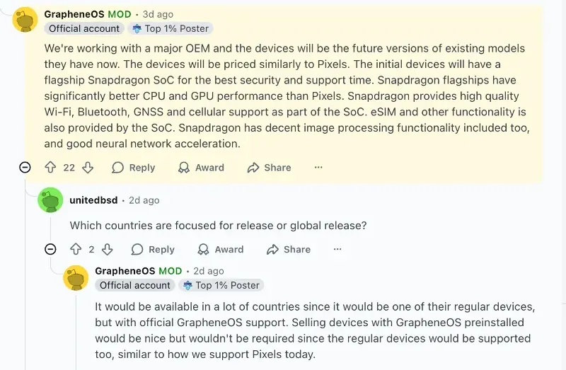 كشف فريق GrapheneOS في منشور على منصة Reddit أنهم يعملون مع “شركة تصنيع أندرويد كبرى” منذ يونيو 2025 لتمكين الدعم الرسمي لإصدارات مستقبلية من هواتفها. وأشار الفريق إلى أن هذه الأجهزة الجديدة ستتميز بالآتي: