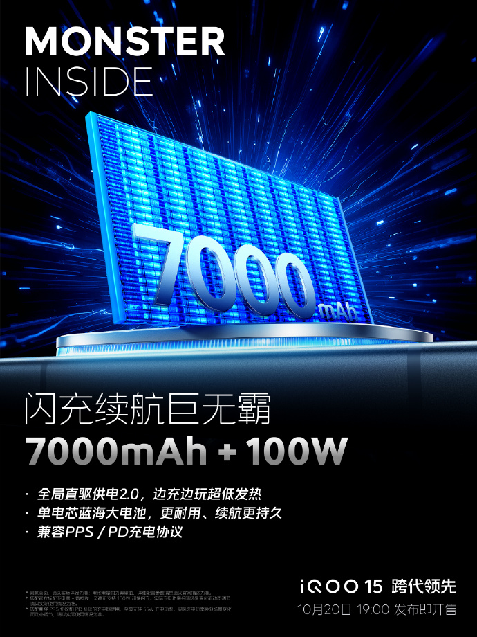 أكدت iQOO رسمياً أن هاتفها الرائد القادم، iQOO 15، سيضم بطارية Blue Ocean بسعة 7000mAh. كشفت الشركة عن هذه التفاصيل قبل الإطلاق الرسمي المقرر في 20 أكتوبر في الصين.