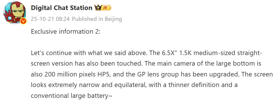 وسيحتوي الهاتف على شاشة LTPO OLED مسطحة بحجم 6.78 بوصة مع حواف متناظرة فائقة النحافة. وأضاف المسرب أن المعالج لن يكون الميزة الأبرز، حيث ستركز السلسلة بأكملها بشكل كبير على أداء الكاميرا وصقل التصميم.