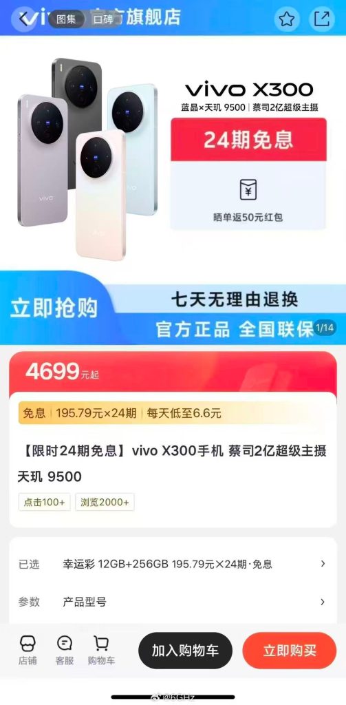 رصد مدون تقني هاتف Vivo X300 مدرجاً على أحد مواقع البيع بالتجزئة الصينية، حاملاً سعر 4,699 يوان (حوالي 660 دولاراً أمريكياً).
