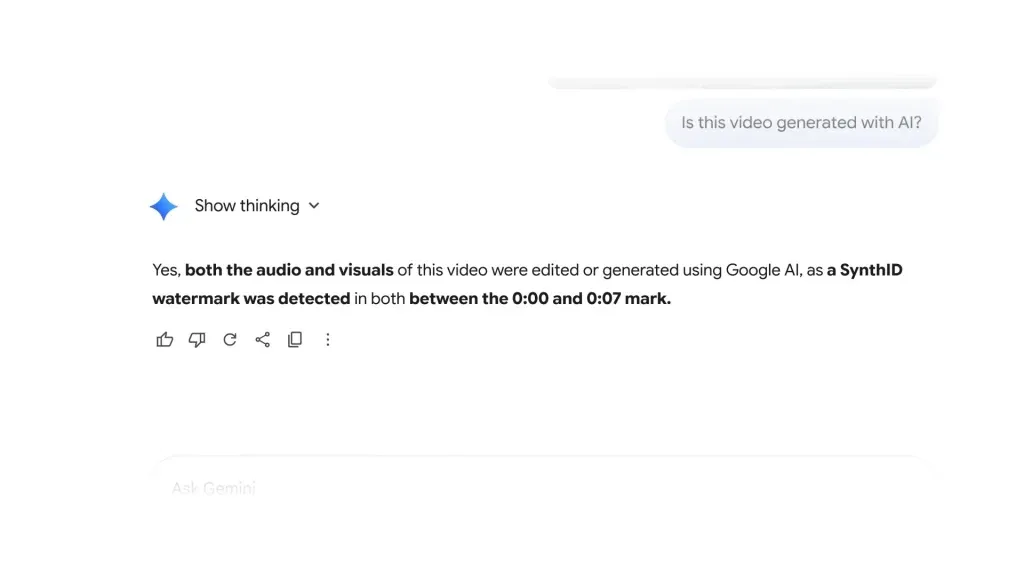 - اطرح سؤالاً مثل: “هل تم إنشاء هذا الفيديو باستخدام Google AI؟”.