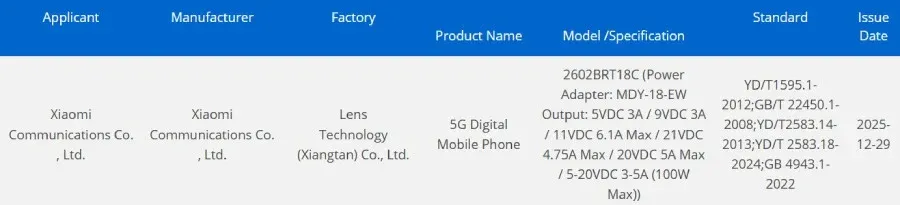 وفقاً لبيانات الشهادة، سيدعم الهاتف تقنية الشحن السريع بقدرة 100 واط (100W Fast Charging). وكالعادة، لا تكشف شهادات 3C عن باقي المواصفات، لكنها تعطي مؤشراً قوياً على قرب موعد الطرح.