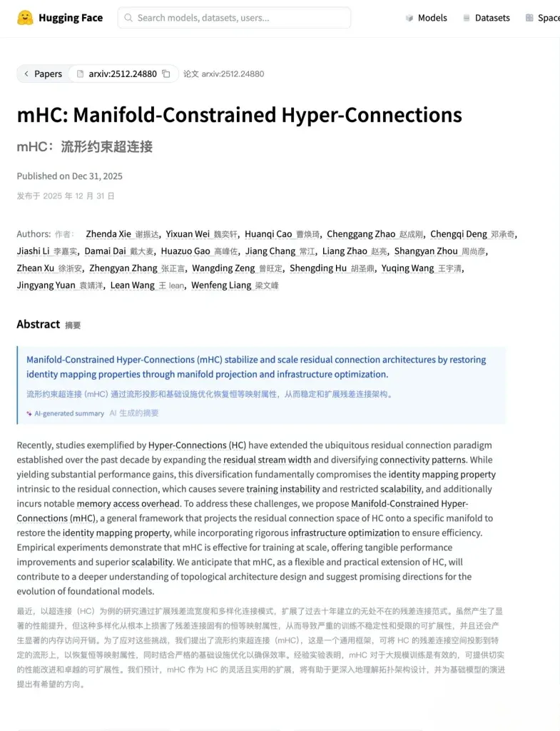 تتمحور الورقة البحثية حول طريقة جديدة تُطلق عليها الشركة اسم “الربط التشعبي المقيد” (Manifold-constrained hyperconnection – mHC).