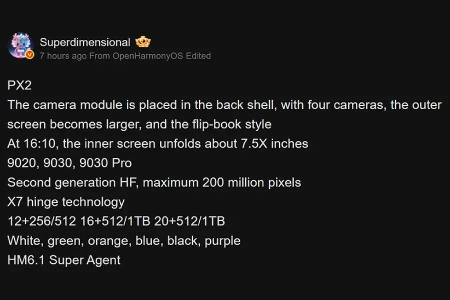 كما يُشاع أن تقنية “المفصلة” (Hinge) ستكون مستعارة من هاتف Huawei Mate X7، مما يشير إلى تحسينات ملحوظة في المتانة وسلاسة الحركة.