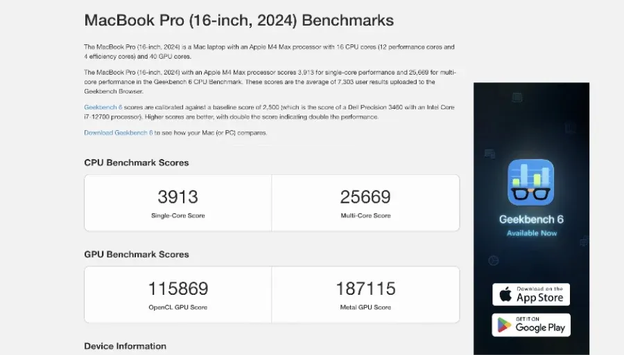 تضع هذه الأرقام المعالج في نفس الفئة الوزنية لشرائح Apple M4 Pro القوية.