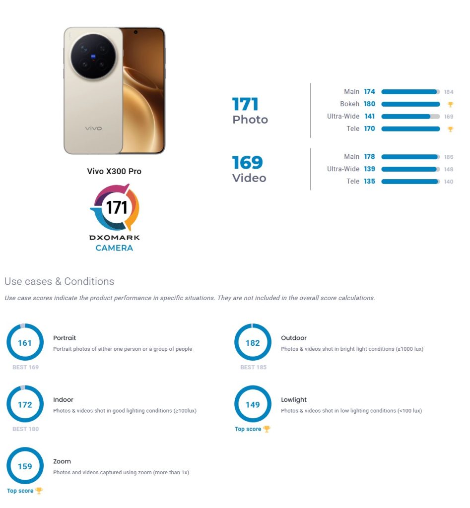 عند الغوص في التفاصيل، نجد أن Vivo X200 Ultra لا يزال يحتفظ بأفضلية طفيفة في فئة الصور الثابتة، حيث سجل 173 نقطة مقابل 171 نقطة لهاتف X300 Pro.