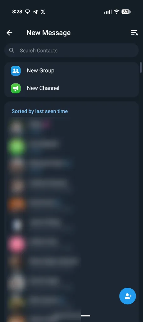 أما الميزات التي كانت موجودة فيها، مثل “مجموعة جديدة” وغيرها، فقد تم نقلها الآن إلى قائمة خيارات إضافية (Overflow Menu) تظهر على شكل ثلاث نقاط في الزاوية العلوية اليمنى من شاشة المحادثات.